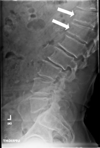 There is increased pressure on the front of the vertebra due to the normal alignment of the spine, especially when bending over. For some reason that has yet to be determined, some individuals develop “softer” growth plates on these vertebral bodies in a condition called osteochondrosis. This increased pressure causes injury to the growth plate in front and deforms the vertebra.